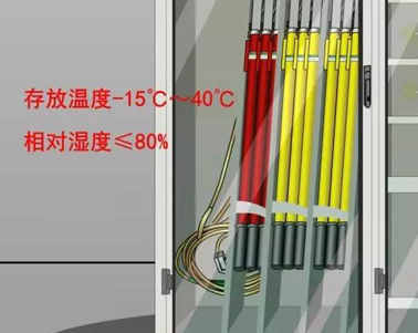 (1)絕緣桿、接地線等要有編號,按編號使用和存放,物、號對應(yīng)。安全工器具宜存放在-15~35攝氏度、相對濕度為80%以下、干燥通風(fēng)的安全工器具室內(nèi)。