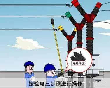 (4)使用驗電器要戴絕緣手套逐漸靠近驗電設(shè)備,直至驗電器發(fā)出報警聲響、提示光亮和“噼啪”的放電聲為止。