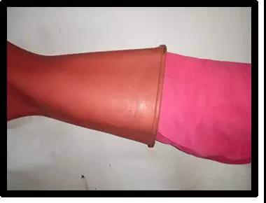 戴上手套應(yīng)將外衣袖口放入手套伸長(zhǎng)部分內(nèi)。