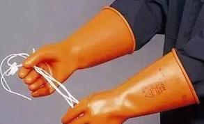 絕緣手套在使用前必須進(jìn)行充氣檢驗(yàn),發(fā)現(xiàn)有任何破損則不能使用。外觀檢查時(shí)如發(fā)現(xiàn)有發(fā)粘、裂紋、破口(漏氣)、氣泡、發(fā)脆等損壞時(shí)禁止使用。