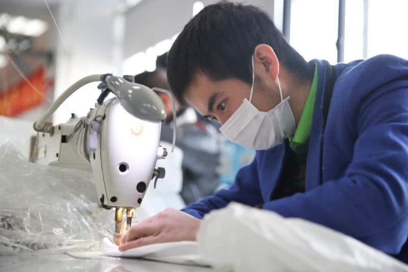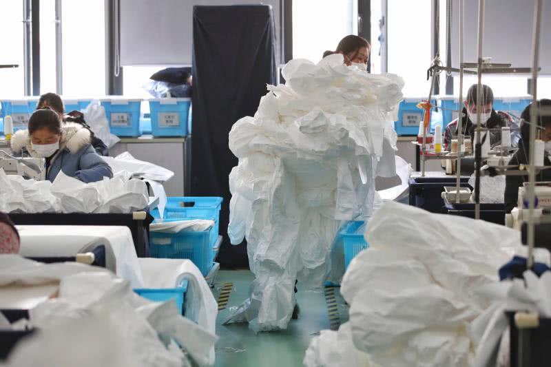 上海誠(chéng)格安全防護(hù)用品有限公司防護(hù)服生產(chǎn)車間經(jīng)過了幾天的設(shè)備調(diào)整,50多個(gè)車位,70多名工人正在加班加點(diǎn)趕制醫(yī)用防護(hù)服。
